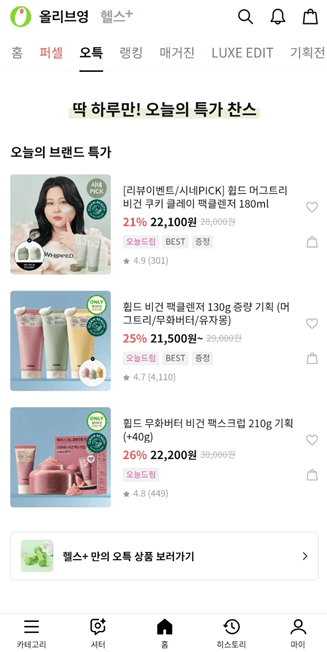 - '오늘의 특가'에서 매일 할인 정보 확인