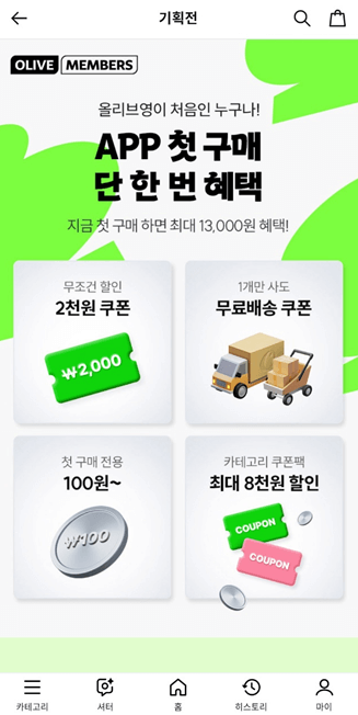 - 앱 특가: ‘오늘의 특가’에서 매일 새로운 상품 할인