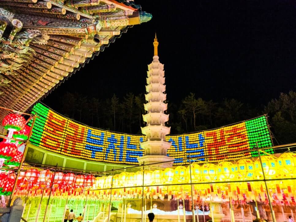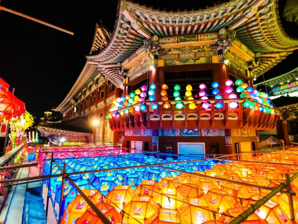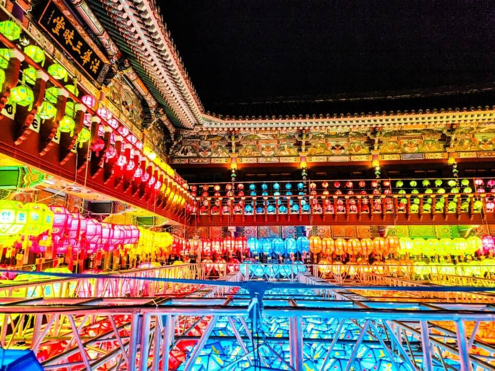 이때 하늘도 남아 있고, 연등도 다 켜져서 ‘빛과 하늘의 조화’가 최고랍니다.